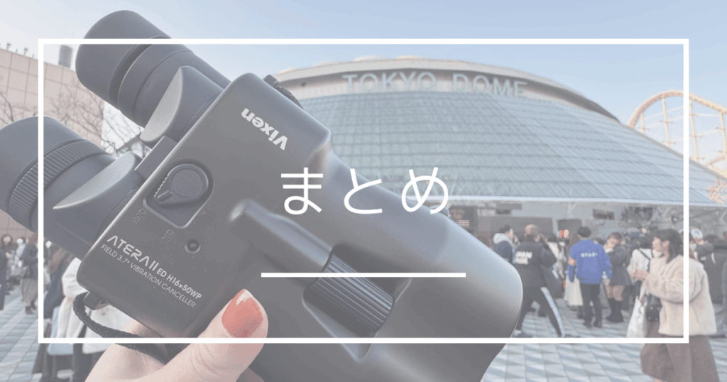 ドーム公演が多い方、双眼鏡選びで迷っている方の参考になれば嬉しいです。